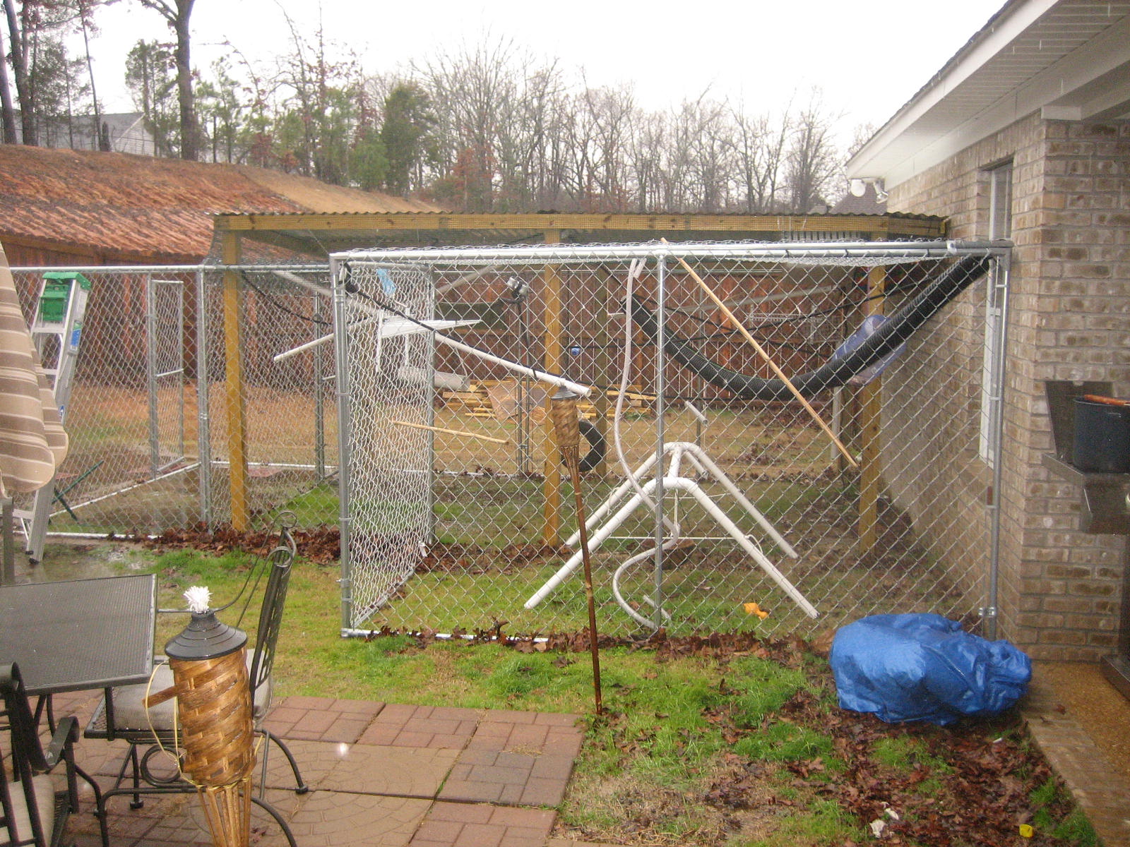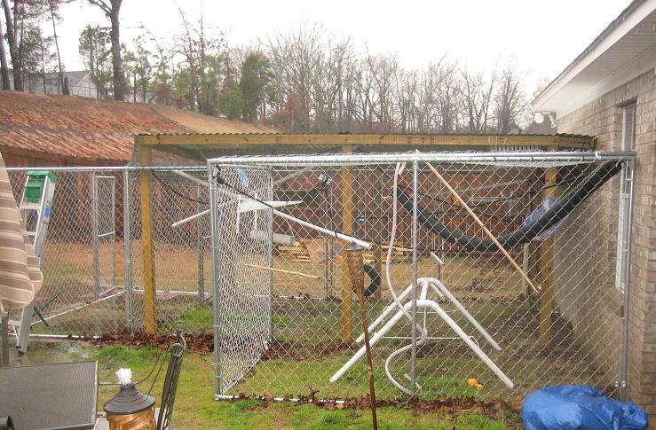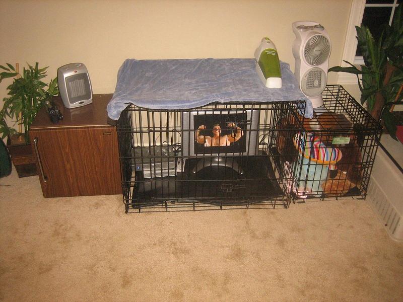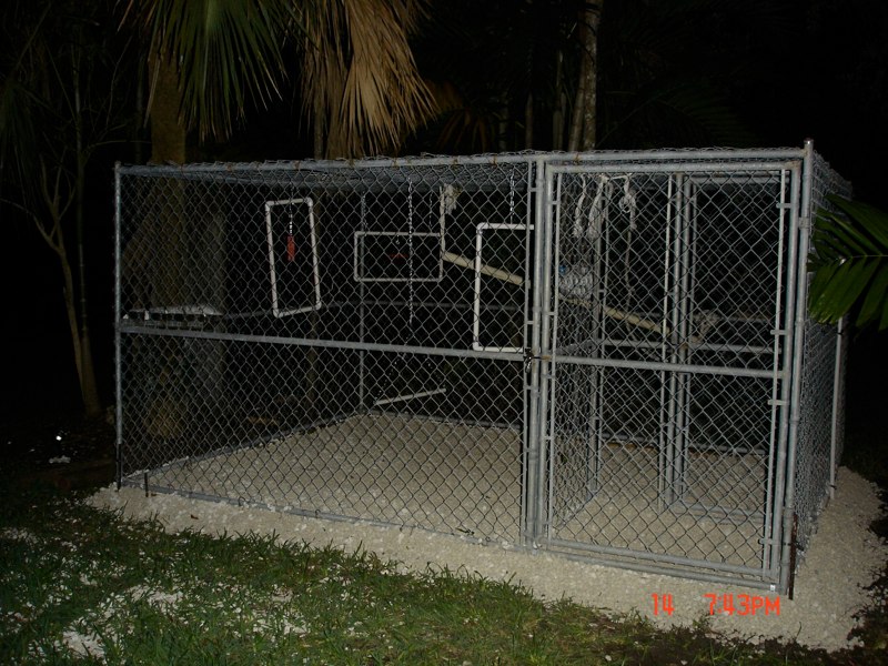 Double doorentry to prevent escape. This is a temporary cage built until the family has permanently moved to their new home where the will be building a larger cage similar to the one above.