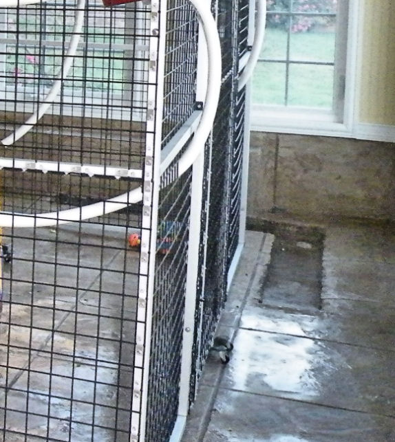 2) This shows the L-shaped 6ft x 6ft Drain at the backside of the cage. This allows for better hosing of Veggie leftovers and Fecal material. The limitation with this is the 10" drain pipe to city sewer that is the maximum size that is allowed in our area. This L-shaped drain keeps the contaminated food, drain and other products out of reach of curious hands and mouths.