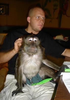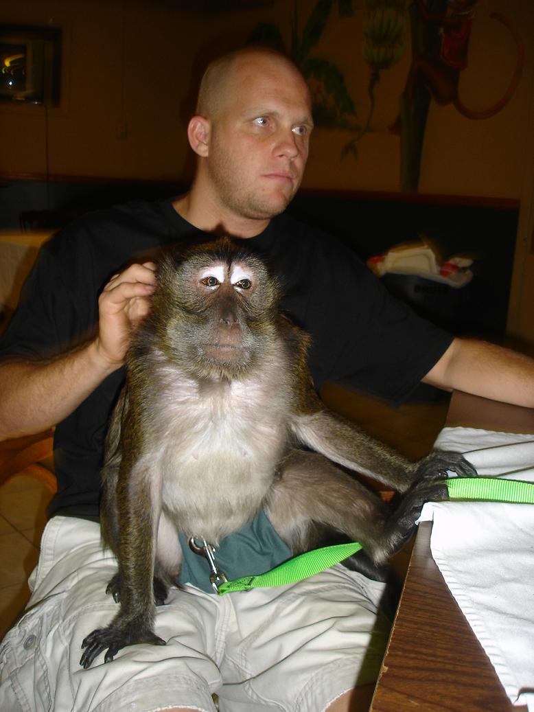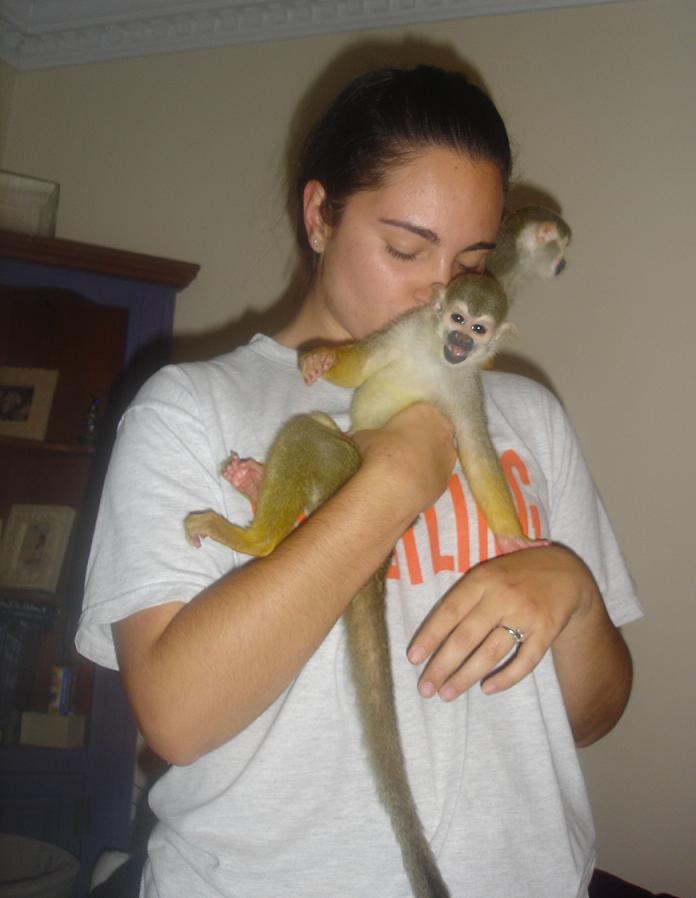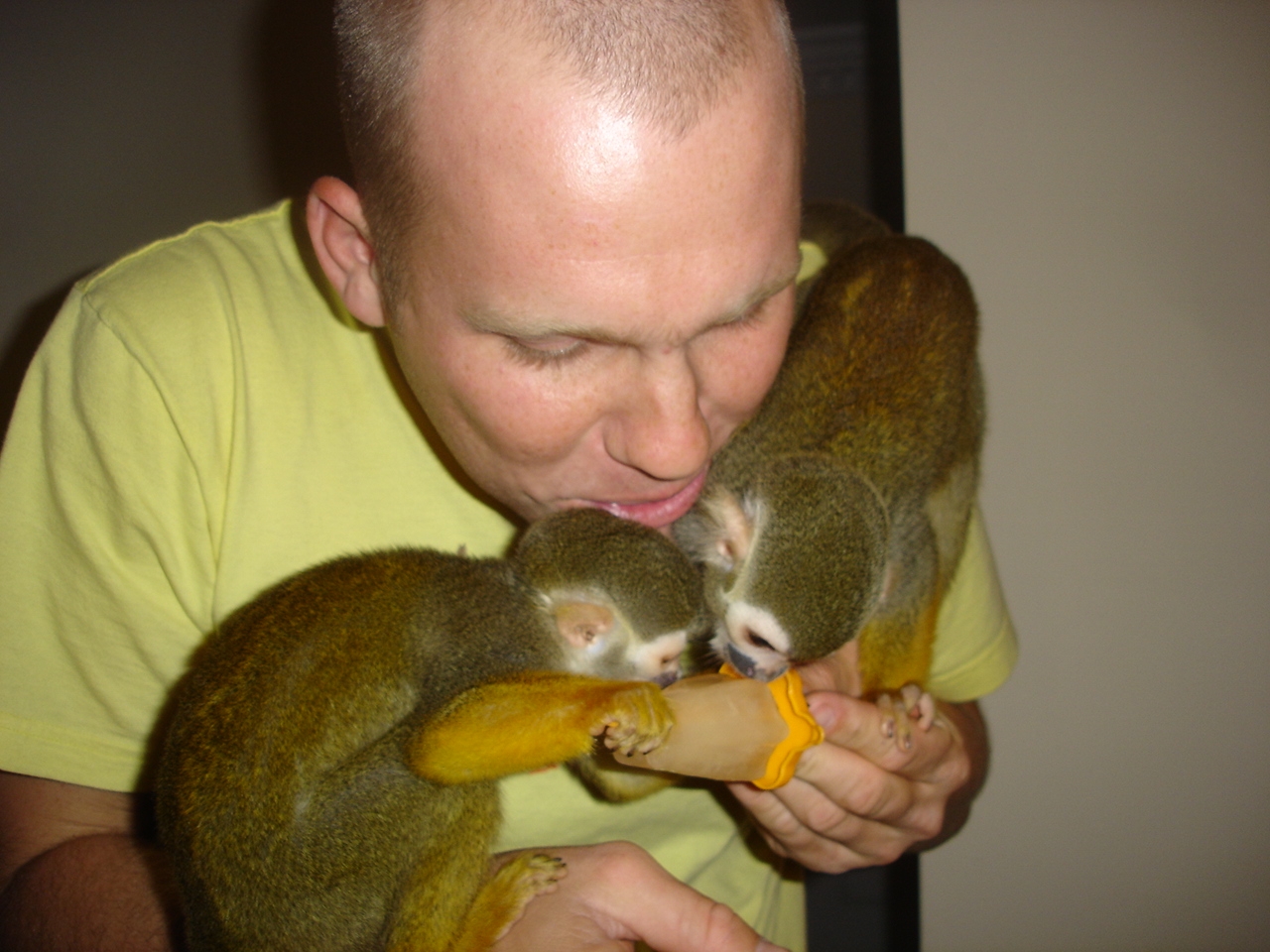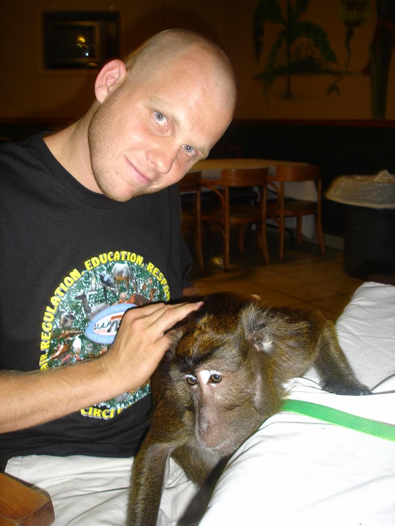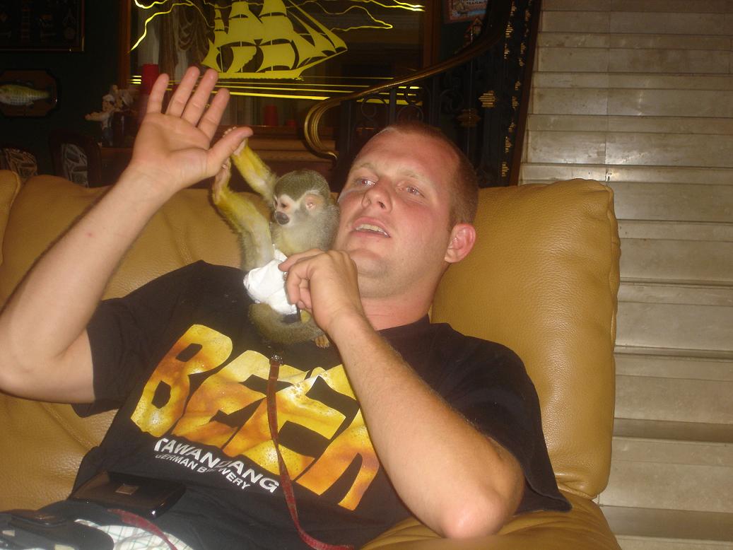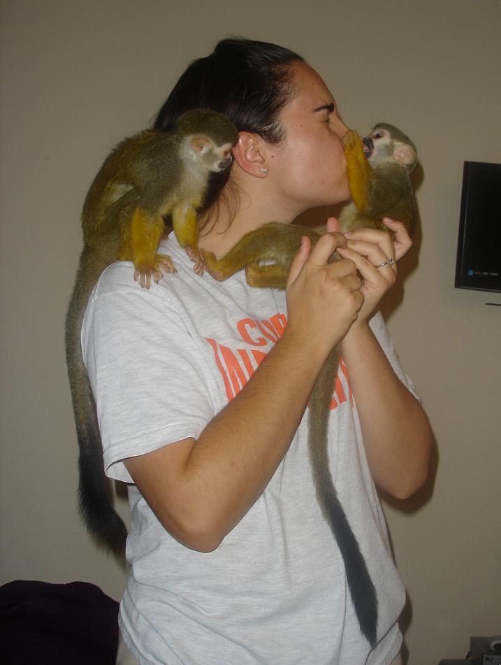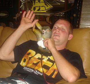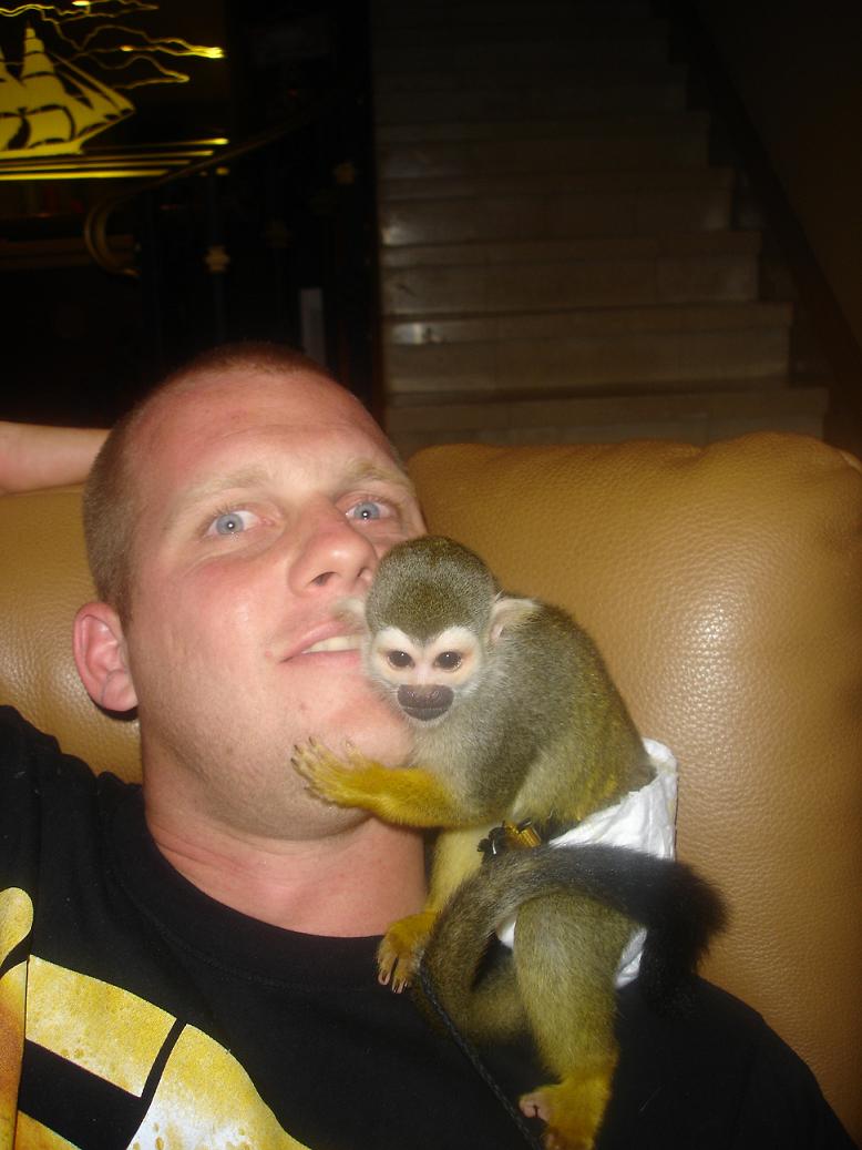 Me & Danny with the monkeys before bed time. I was playing with them before putting them in their sleeping cages.