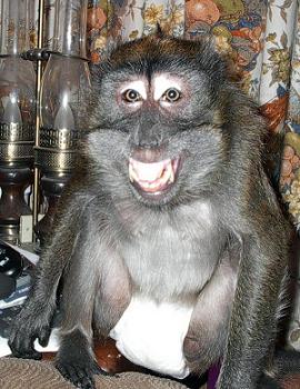 Below are a few pictures from the Uappeal Expo. Pictured with Danny & I is Bundy, a 21 year old jave macaque. Bundy LOVED getting his back and tummy rubbed. He is a big boy. Danny hadn't seen his canines until after he was pleasantly on his lap demanding a massage. It was pretty funny to see Danny's face when Bundy smiled at him.